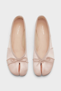 Maison Margiela’s Tabi ballerinas are crafted in satin with a soft silhouette. The split-toe design, inspired by 15th-century Japanese socks, debuted in the Maison’s 1989 show and remains a house signature. A front bow refines the finish, while a single white stitch at the back marks the Maison’s identity. Product Details Item ID S58WZ0155P7551T2563 Upper: 44% cotton 36% acetate 16% polyamide-nylon 4% elastane-spandex Lining: 100% cotton Inside: 100% ovine leather Sole: 100% calf leather Tabi split toe Four stitches at the back Made in Italy