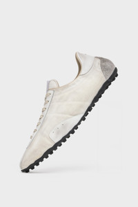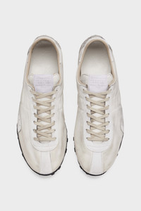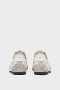 Crafted from drill, hairy suede and calfskin with a vintage treatment, the Sprinters silhouette is inspired by retro running shoes. Block colour contrast is met with the classic tongue displaying the numeric logo. The studded base also features number detailing with the 22 encircled indicating the Maison's footwear collection. Maison Margiela's signature stitch appears at the back; the opposite of a label. Product Details Item ID S58WS0264P8190HA777 Upper: 54% Polyester 46% Cotton Contrast: 100% Calf Leather Contrast: 100% Calf Leather Lining: 100% Polyester Contrast: 100% Calf Leather Inside: 100% Calf Leather Sole: 100% Rubber Low-top sneakers in drill cotton with vintage treatment Stripe down the center of the toe area Cleated rubber sole with numerical logo details Logo label on the tab White stitching at the back Clean with a gentle leather cleanser Made in Italy