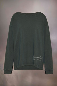 With a round neckline and long sleeves, the top is made in jersey cotton. It features distressed details at the neck and cuffs, which are artfully ripped. It is designed with ribbed trims and a relaxed silhouette, accented with the Maison Margiela stamp logo near the hip and MM logo in the small yoke at the back. Maison Margiela's signature, the four stitches, appear at the back; the opposite of a label. Product Details Item ID S51GC0535S24567969 Primary Fabric: 100% Cotton Cotton sweatshirt Maison Margiela logo stamp at the front Dropped shoulder Ribbed trims Four stitches at the back Made in Italy Model is 178 cm tall and wears a size S.