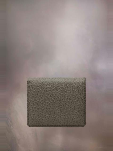 Crafted from embossed grainy leather, the cardholder has an inner envelope pocket and numeric logo with four card holders. Maison Margiela's signature, the four stitches, appear at the back; the opposite of a label. Product Details Item ID S56UI0140P4455T1003 Outer: Grainy calf leather with soft touch Lining: Viscose Four stitchesat the back Snap button closure Inside logo stamping Inside snap button closure pocket Inside flat pocket Five card slots Clean with a specific leather cleaner product and a humid microfiber cloth Made in Italy 9 cm x 10,5 cm/3,5 in x 4,1 in (Length x Height)