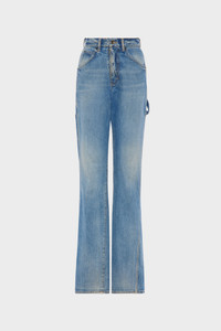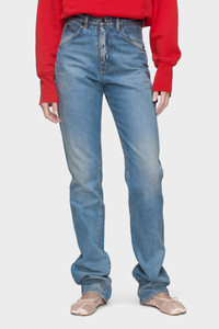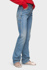 Cut in cotton denim, these jeans feature a straight-leg silhouette with subtle fading across the seams. A side utility pocket disrupts the classic 5-pocket design, while the memory of the jacron patch reinforces the Maison’s deconstructive approach. At the back, the Maison’s signature four stitches appear; the opposite of a label. Product Details Item ID S51LA0182S30561987 Primary fabric: 100% cotton 14 oz origin denim Pocket lining: 65% polyester 35% cotton Full-length straight-leg Carpenter pocket detail Front button and zip closure Four stitches at the back Made in Italy