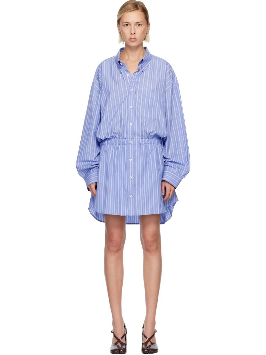 Cotton poplin romper. · Stripes throughout · Spread collar · Button closure · Patch pocket at chest · Elasticized waist · Shirttail hem · Buttoned barrel cuffs · White stitching at back collar · Locker loop at back yoke · Integrated cotton poplin shorts at interior Supplier color: Blue stripe 100% cotton. Made in Italy 252168F070000