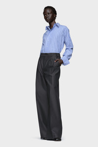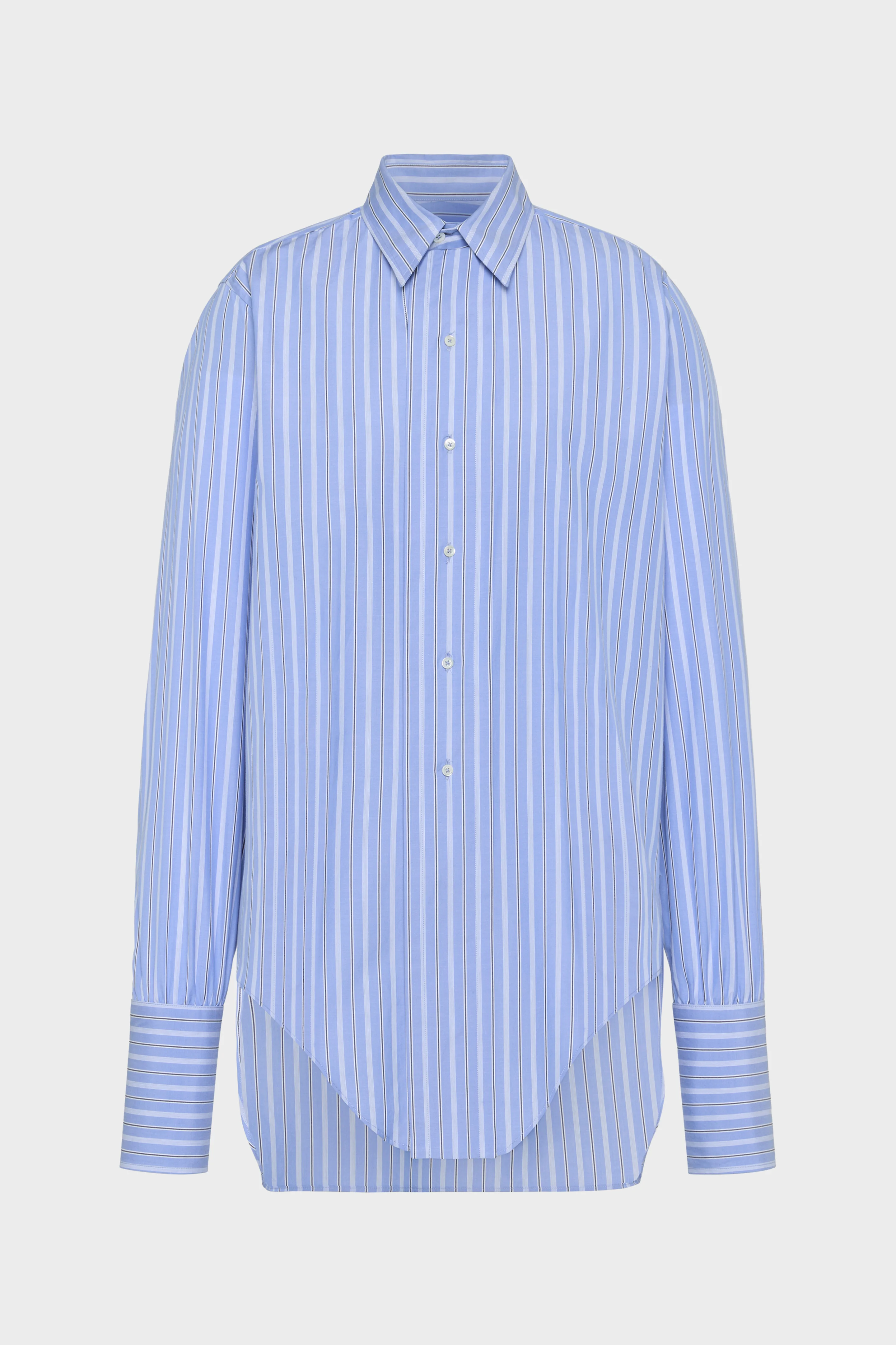 A sharp reinterpretation of the classic shirt, cut in cotton with extended cuffs and an elongated hem that curves to a centre point. Tailored with precision and subtle disruption, it captures the Maison’s refined take on structure and imbalance. At the back, the Maison’s signature four stitches appear; the opposite of a label. Product Details Item ID S29DT0006M35625002F Primary fabric: 100% Cotton Long-sleeved cotton shirt Pointed collar Front button fastening Oversized cuffs with button closure Curved, pointed front hem Straight back hem Made in Italy
