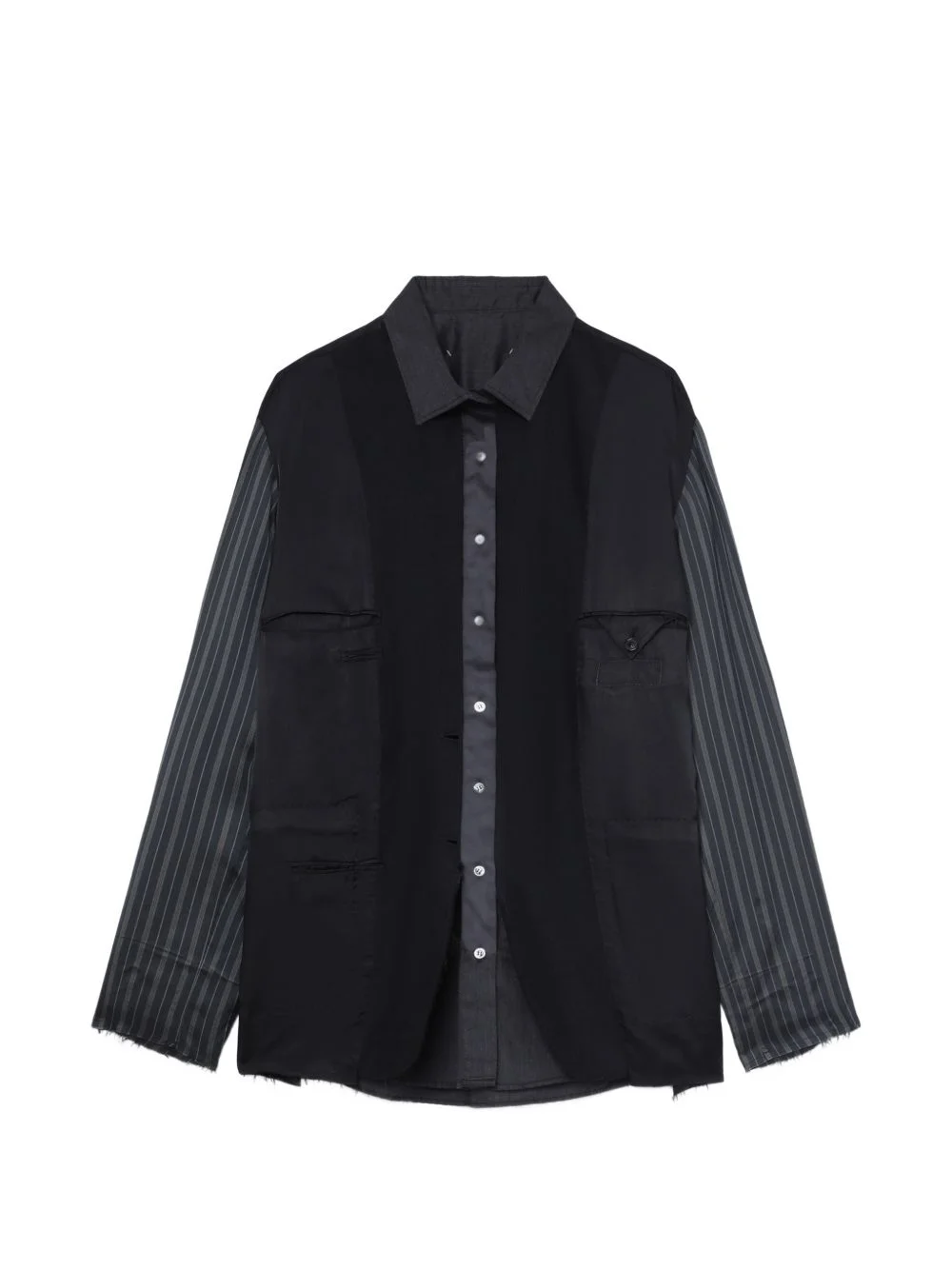 striped panelled shirt jacket Highlights - Charcoal grey - Striped sleeves - Front button fastening - Classic collar - Front pouch pockets Made in Italy Composition Body: Mohair 60%, Wool 40% Washing instructions Read Manufacturer Guidelines