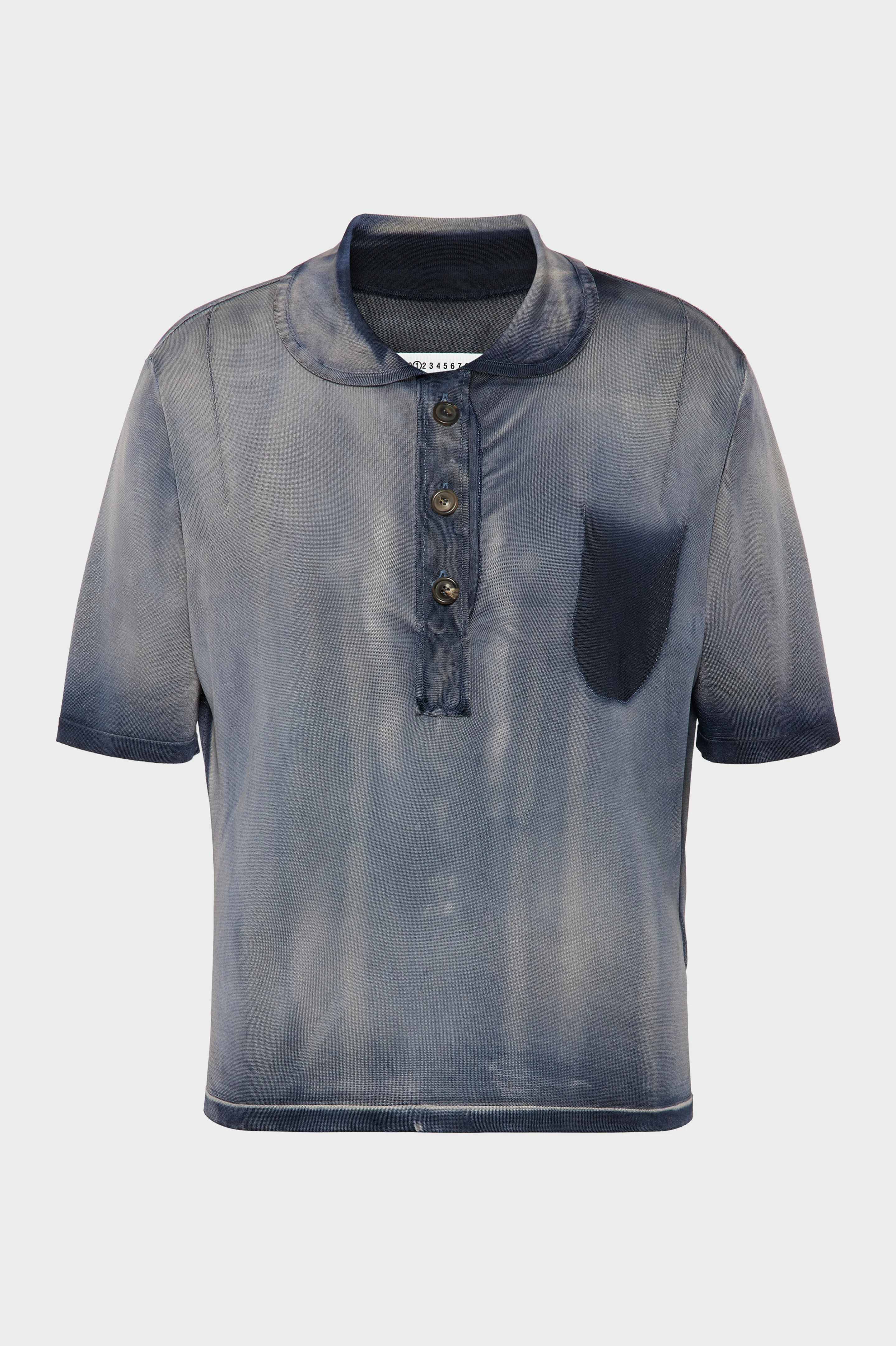 In a limited run, this sun-faded polo top recalls garments naturally worn by time. Drawing from real workwear pieces, it’s finished with a vintage wash that mimics the patina of sun exposure, lending texture to its ultralight construction. Maison Margiela’s signature, the four stitches, appear at the back; the opposite of a label. Product Details Item ID S51GL0064M13155001F Primary Fabric: 100% Viscose-Rayon Short-sleeve shirt with sun-faded treatment Soft polo collar and button placket Contrast chest patch pocket in opaque tonal fabric Four stitches at the back Made in Italy