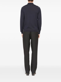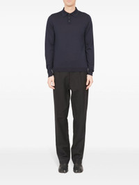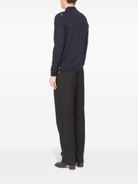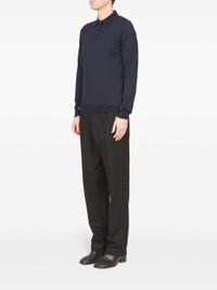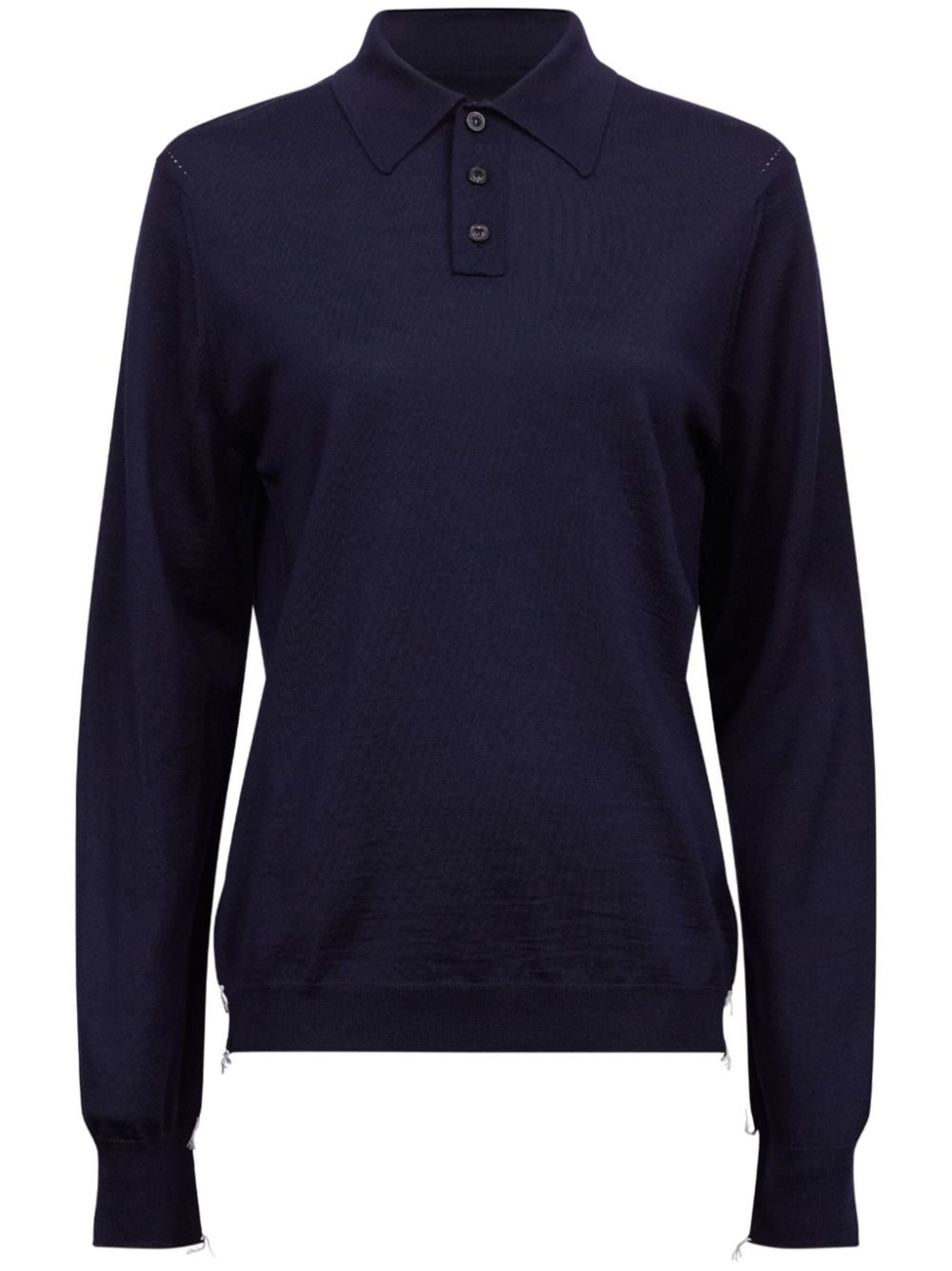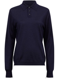 midnight blue wool fine knit short front button fastening polo collar long sleeves signature four-stitch logo decorative stitching ribbed cuffs and hem When buying this unisex item, keep in mind that it is graded in standard men's sizing. Size & Fit Model Measurements: Bust: 0cm Height: 0cm Hips: 0cm Waist: 0cm Fabric and Care Designer Style ID: S51GL0052M13057 Designer Colour: 511 Composition: Wool 100%Made in Italy