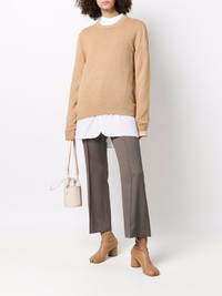 round neck knit jumper beige cashmere/wool/cotton/silk ribbed detailing round neck long sleeves straight hem Imported Composition Wool 47%, Cashmere 25%, Silk 25%, other fibers 1%, Cotton 1%, Polyester 1% SIZE & FIT Model measurements Height 5 ft 10 in(1.79 m) Bust/Chest 31.88 in(81 cm) Hips 35.43 in(90 cm) Waist 23.62 in(60 cm) FittingInformation This piece fits true to size. We recommend you get your regular size Cut for a loose fit Made with a mid-weight fabric Washing instructions Hand Wash