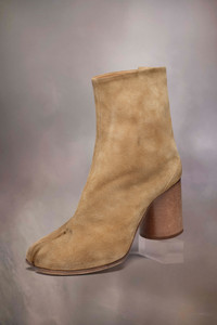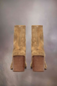 Crafted from suede with a used treatment created by hand, the ankle boots have an 8cm cylindrical heel. The back features a single white stitch showing the hand of Maison Margiela. They feature the Tabi split-toe shape, inspired by the traditional 15th century Japanese sock bearing the same name – launched for the Maison's debut collection in 1989. It captures the avant-garde and insubordinate spirit of the Maison and exists as a heritage classic, continually explored through each collection. Product Details Item ID S58WU0260P4350T2279 Upper: 100% calf leather Lining: 100% lamb leather Inside: 100% lamb leather Sole: 100% calf leather Contrast: 100% rubber Heel height: 8 cm/3 in Cylindrical heel Ankle boots in suede calf leather with aged treatment Tabi split toe White stitching at the back Hook closure Gently brush with a delicate brush to clean Made in Italy A digital certificate provided by the Aura Blockchain Consortium guarantees the authenticity of this product. Discover more on auraluxuryblockchain.com/#about