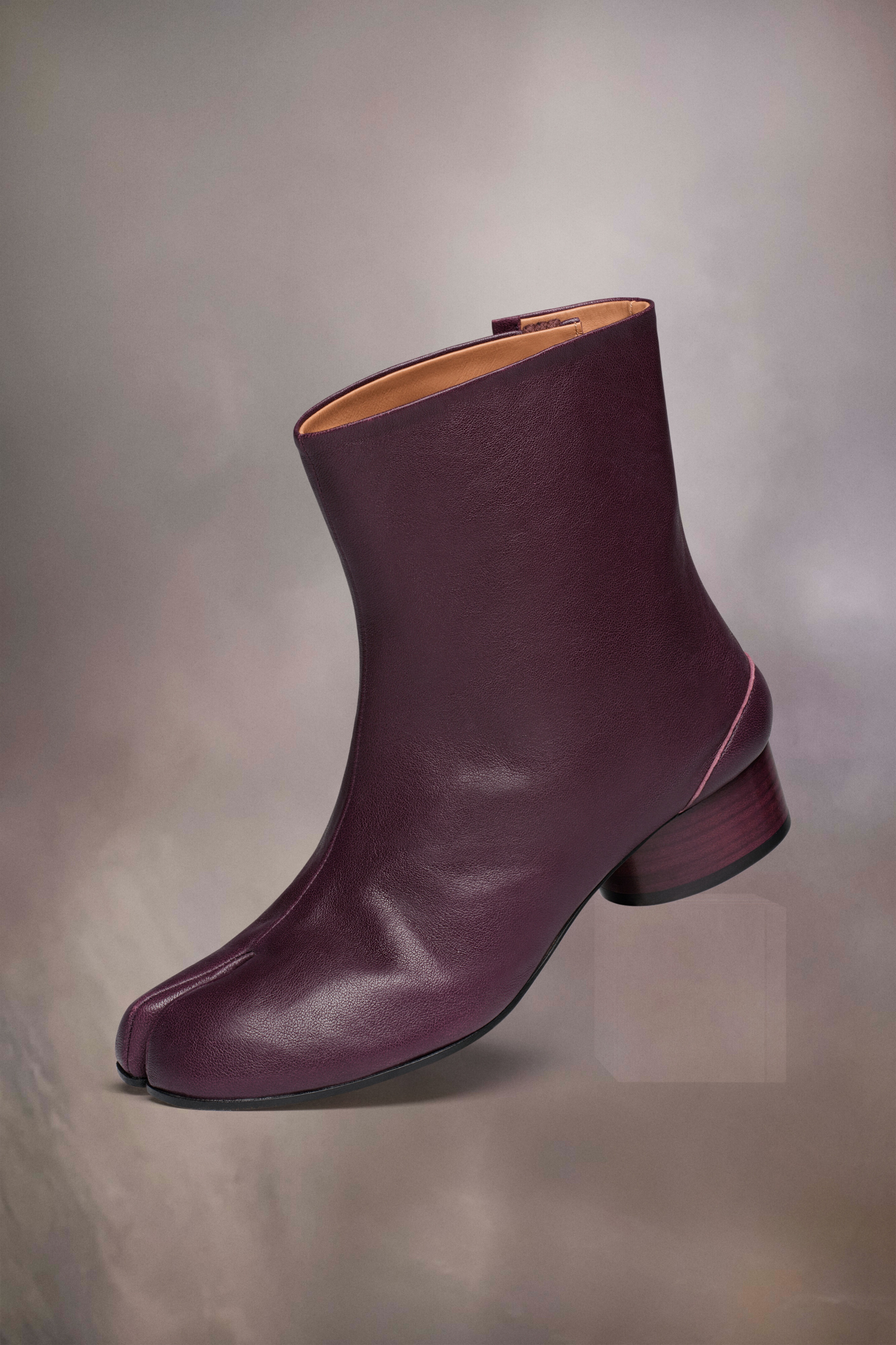 Crafted from soft nappa leather, the ankle boots feature a 3cm cylindrical heel and the Tabi split-toe shape, inspired by the traditional 15th century Japanese sock bearing the same name – launched for the Maison's debut collection in 1989. It captures the avant-garde and insubordinate spirit of the Maison and exists as a heritage classic, continually explored through each collection. Product Details Item ID S58WU0273P3753T5088 Upper: 100% lamb leather Lining: 100% calf leather Inside: 100% calf leather Sole: 100% calf leather Contrast: 100% rubber Heel height: 3 cm/1,1 in Cylindrical heel Ankle boots in nappa leather Tabi split toe White stitching at the back Hook closure Due to the delicacy of nappa leather, it is recommended to use vegetable leather products for care and maintenance Made in Italy A digital certificate provided by the Aura Blockchain Consortium guarantees the authenticity of this product. Discover more on auraluxuryblockchain.com/#about