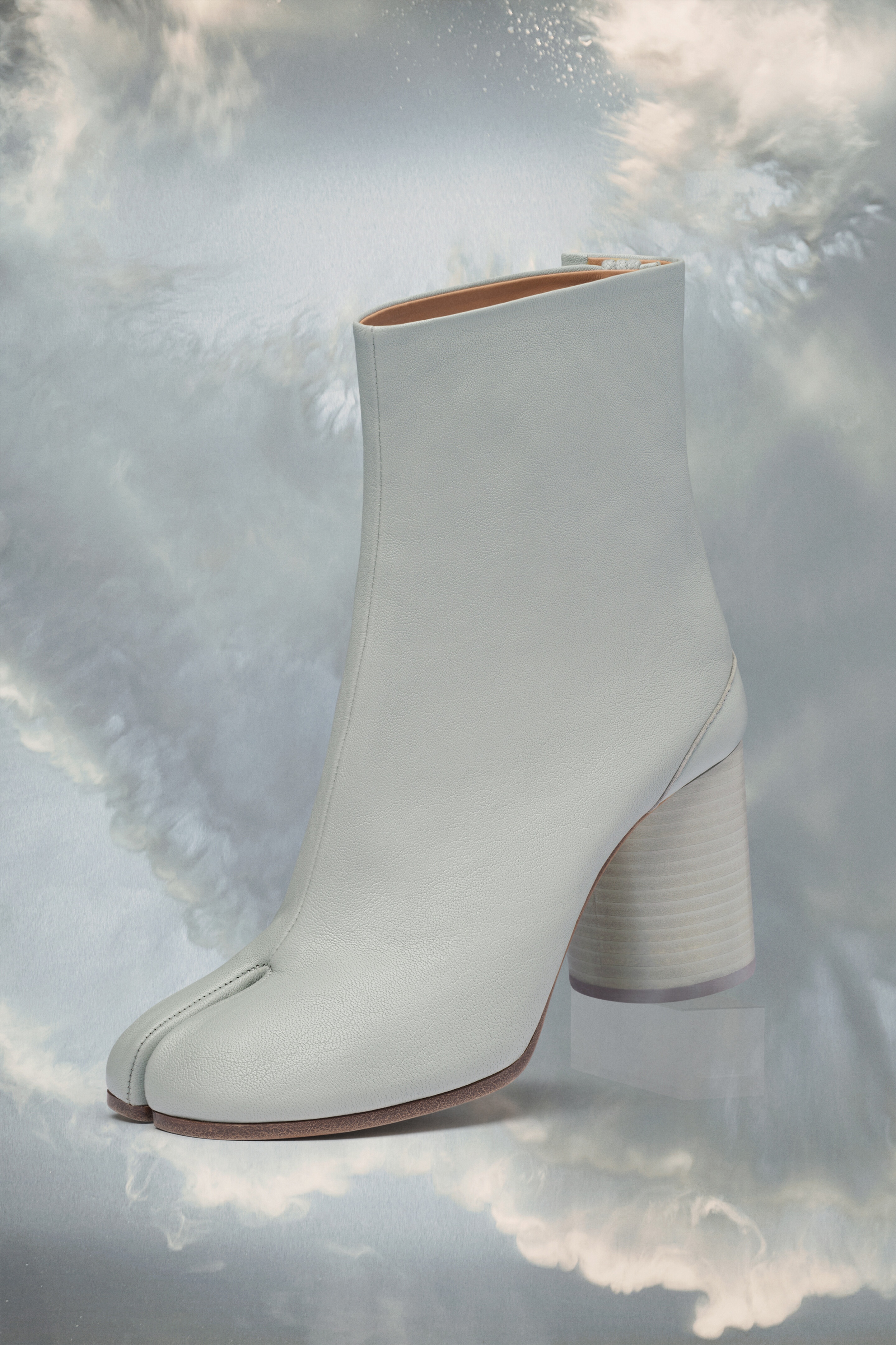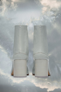 Crafted from soft nappa leather, the ankle boots feature a 8cm cylindrical heel and the Tabi split-toe shape, inspired by the traditional 15th century Japanese sock bearing the same name – launched for the Maison's debut collection in 1989. It captures the avant-garde and insubordinate spirit of the Maison and exists as a heritage classic, continually explored through each collection. Product Details Item ID S58WU0260P3753T8141 Upper: 100% lamb leather Lining: 100% calf leather Inside: 100% calf leather Sole: 100% calf leather Contrast: 100% rubber Heel height: 8 cm/3 in Cylindrical heel Ankle boots in nappa leather Tabi split toe White stitching at the back Maison Margiela logo on the sole Hook closure Due to the delicacy of nappa leather, it is recommended to use vegetable leather products for care and maintenance Made in Italy A digital certificate provided by the Aura Blockchain Consortium guarantees the authenticity of this product. Discover more on auraluxuryblockchain.com/#about
