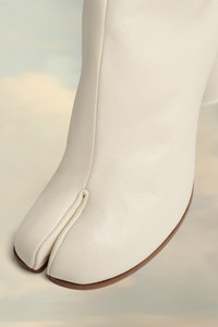 Crafted from soft nappa leather, the ankle boots feature a 8cm cylindrical heel and the Tabi split-toe shape, inspired by the traditional 15th century Japanese sock bearing the same name – launched for the Maison's debut collection in 1989. It captures the avant-garde and insubordinate spirit of the Maison and exists as a heritage classic, continually explored through each collection. Product Details Item ID S58WU0260P3753T1003 Upper: 100% lamb leather Lining: 100% calf leather Inside: 100% calf leather Sole: 100% calf leather Contrast: 100% rubber Heel height: 8 cm/3 in Cylindrical heel Ankle boots in nappa leather Tabi split toe White stitching at the back Hook closure Due to the delicacy of nappa leather, it is recommended to use vegetable leather products for care and maintenance Made in Italy A digital certificate provided by the Aura Blockchain Consortium guarantees the authenticity of this product. Discover more on auraluxuryblockchain.com/#about