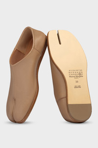 Crafted from soft nappa leather, the babouche shoes feature the Tabi split-toe, inspired by the traditional 15th century Japanese sock bearing the same name – launched for the Maison's debut collection in 1989. It captures the avant-garde and insubordinate spirit of the Maison and exists as a heritage classic, continually explored through each collection. Product Details Item ID S58WR0033P3753T4091 Upper: 100% nappa leather Lining: 100% calf leather Inside: 100% calf leather Sole: 100% calf leather Babouche in nappa leather Tabi split toe Dual-wear soft heel White stitching at the back Due to the delicacy of nappa leather, it is recommended to use vegetable leather products for care and maintenance Made in Italy A digital certificate provided by the Aura Blockchain Consortium guarantees the authenticity of this product. Discover more on auraluxuryblockchain.com/#about