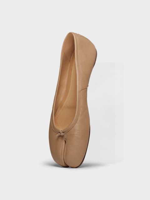 The Tabi ballerina flats in soft nappa leather feature the Tabi split-toe, inspired by the traditional 15th century Japanese sock bearing the same name – launched for the Maison's debut collection in 1989. It captures the avant-garde and insubordinate spirit of the Maison and exists as a heritage classic, continually explored through each collection. Product Details Item ID S58WZ0042P3753T8013 Upper: 100% Nappa leather Lining: 100% Calf leather Sole: 100% Calf leather Tabi split toe Cotton knot White stitching at the back Brand logo on the insole Due to the delicacy of nappa leather, it is recommended to use vegetable leather products for care and maintenance Made in Italy A digital certificate provided by the Aura Blockchain Consortium guarantees the authenticity of this product. Discover more on auraluxuryblockchain.com/#about