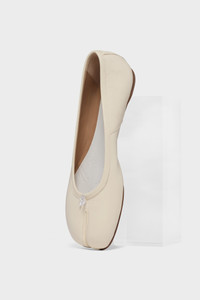 The Tabi ballerina flats in soft nappa leather feature the Tabi split-toe, inspired by the traditional 15th century Japanese sock bearing the same name – launched for the Maison's debut collection in 1989. It captures the avant-garde and insubordinate spirit of the Maison and exists as a heritage classic, continually explored through each collection. Product Details Item ID S58WZ0042P3753T1003 Upper: 100% Nappa leather Lining: 100% Calf leather Sole: 100% Calf leather Tabi split toe Cotton knot White stitching at the back Brand logo on the insole Due to the delicacy of nappa leather, it is recommended to use vegetable leather products for care and maintenance Made in Italy A digital certificate provided by the Aura Blockchain Consortium guarantees the authenticity of this product. Discover more on auraluxuryblockchain.com/#about