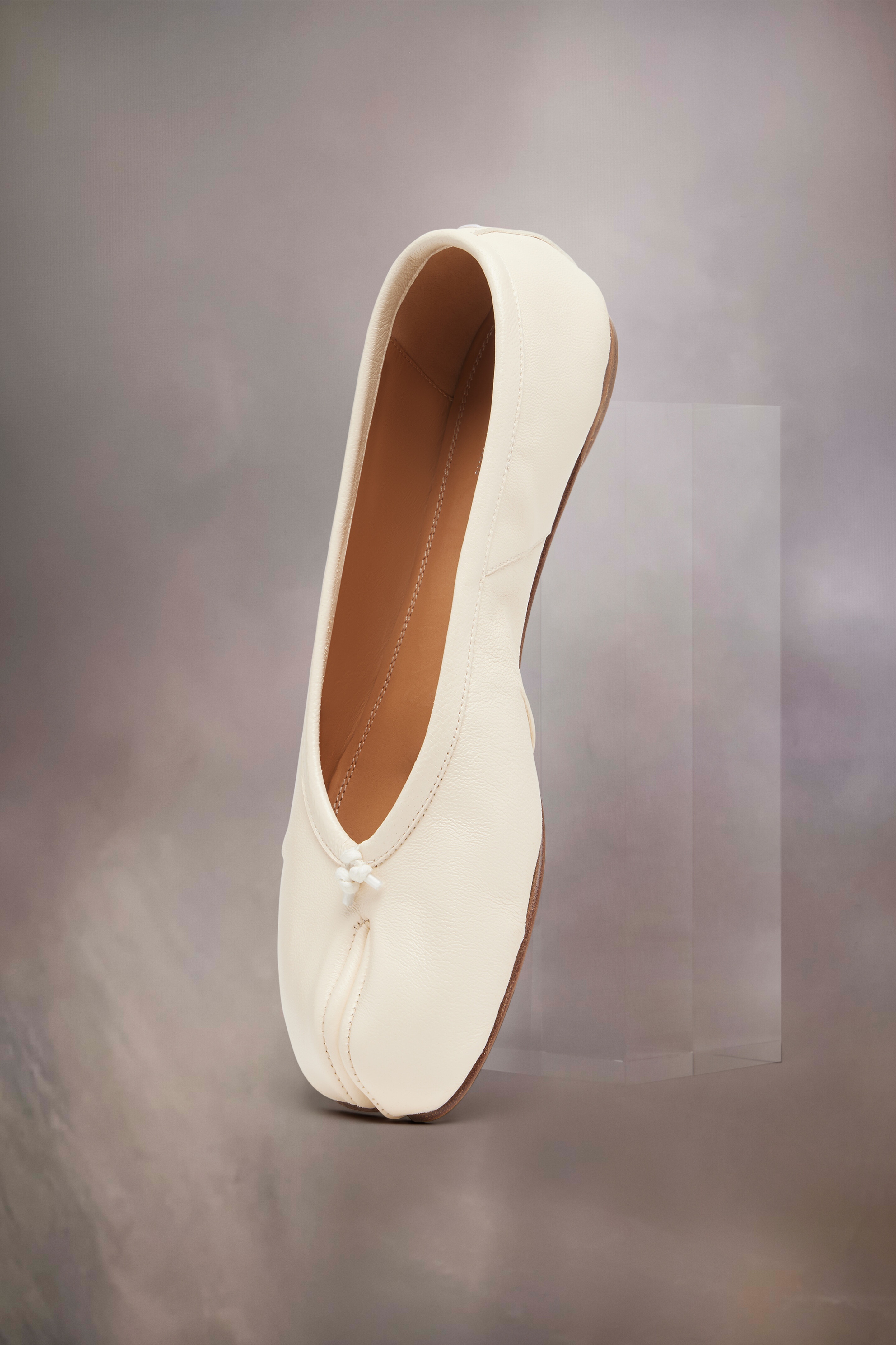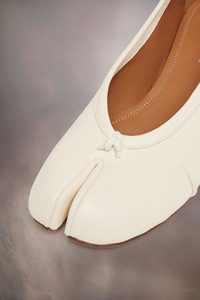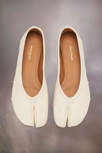 Maison Margiela presents the Tabi new ballerinas, which take their design from ballerina shoes in the house archives. They are crafted in soft nappa leather with a hand crafted used treament applied at the folds, base and seams, manually worked to create an artisanal vintage effect. They feature the Tabi split-toe, inspired by the traditional 15th century Japanese sock bearing the same name – launched for the Maison's debut collection in 1989. It captures the avant-garde and insubordinate spirit of the Maison and exists as a heritage classic, continually explored through each collection. Product Details Item ID S58WZ0127P6378T1003 Upper: 100% lamb leather Lining: 100% calf leather Inside: 100% calf leather Sole: 100% calf leather Contrast: 100% rubber Ballerina shoes in nappa leather Tabi split toe Handmade leather folds Worn treatment Cotton knot at the front White stitching at the back Maison Margiela logo on the sole Due to the delicacy of nappa leather, it is recommended to use vegetable leather products for care and maintenance Made in Italy A digital certificate provided by the Aura Blockchain Consortium guarantees the authenticity of this product. Discover more on auraluxuryblockchain.com/#about