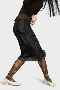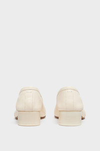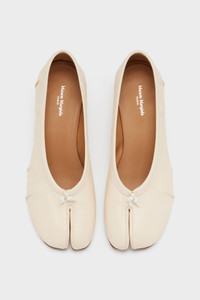 Maison Margiela presents the Tabi new ballerinas, which take their design from ballerina shoes in the house archives. They are crafted in soft nappa leather with a hand crafted used treament applied at the folds, base and seams, manually worked to create an artisanal vintage effect. They feature the Tabi split-toe, inspired by the traditional 15th century Japanese sock bearing the same name – launched for the Maison's debut collection in 1989. It captures the avant-garde and insubordinate spirit of the Maison and exists as a heritage classic, continually explored through each collection. Product Details Item ID S58WZ0128P6378T1003 Upper: 100% Ovine Leather Lining: 100% Calf Leather Inside: 100% Calf Leather Sole: 100% Calf Leather Contrast: 100% Rubber Heel height: 3 cm Cylindrical heel Ballerina shoes in nappa leather Tabi split toe Handmade leather folds Worn treatment Cotton knot at the front White stitching at the back Due to the delicacy of nappa leather, it is recommended to use vegetable leather products for care and maintenance Made in Italy