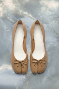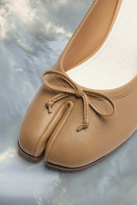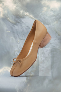 The Tabi ballerina shoes are crafted from soft nappa leather with a 3cm cylindrical heel. They feature the Tabi split-toe, inspired by the traditional 15th century Japanese sock bearing the same name – launched for the Maison's debut collection in 1989. It captures the avant-garde and insubordinate spirit of the Maison and exists as a heritage classic, continually explored through each collection. Product Details Item ID S58WZ0044P3753T4091 Upper: 100% Nappa leather Lining: 100% Calf leather Sole:100% Calf leather Contrast: 100% Rubber Heel height: 3 cm/1 in Cylindrical heel Tabi split toe Leather bow White stitching at the back Brand logo on the insole Internal logo stamping Due to the delicacy of nappa leather, it is recommended to use vegetable leather products for care and maintenance Made in Italy A digital certificate provided by the Aura Blockchain Consortium guarantees the authenticity of this product. Discover more on auraluxuryblockchain.com/#about