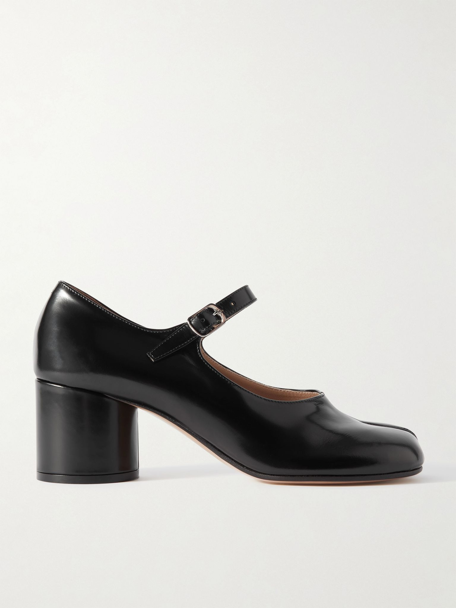 Tabi split-toe glossed-leather Mary Jane pumps Black