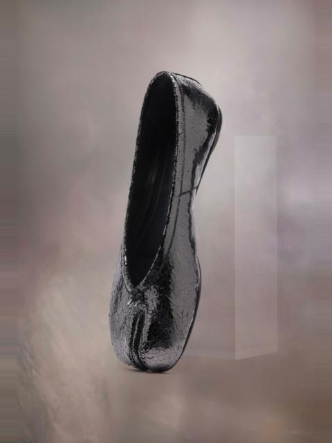 Maison Margiela presents the Tabi new ballerinas, which take their design from ballerina shoes in the house archives. In a broken mirror finish, crafted from leather, the pair feature the Tabi split-toe, inspired by the traditional 15th century Japanese sock bearing the same name – launched for the Maison's debut collection in 1989. It captures the avant-garde and insubordinate spirit of the Maison and exists as a heritage classic, continually explored through each collection. Product Details Item ID S58WZ0130P5016T9002 Upper: 100% calf leather Lining: 100% lamb leather Inside: 100% lamb leather Sole: 100% calf leather Contrast: 100% rubber Ballerina shoes with broken mirror effect Tabi split toe Cotton knot White stitching at the back Brand logo on the insole Made in Italy A digital certificate provided by the Aura Blockchain Consortium guarantees the authenticity of this product. Discover more on auraluxuryblockchain.com/#about