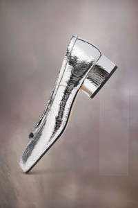 Maison Margiela presents the Tabi new ballerinas, which take their design from ballerina shoes in the house archives. In a broken mirror finish leather, with small heel, the pair feature the Tabi split-toe, inspired by the traditional 15th century Japanese sock bearing the same name – launched for the Maison's debut collection in 1989. It captures the avant-garde and insubordinate spirit of the Maison and exists as a heritage classic, continually explored through each collection. Product Details Item ID S58WZ0133P5016T9002 Upper: 100% calf leather Lining: 100% calf leather Inside: 100% calf leather Sole: 100% calf leather Contrast: 100% rubber Heel height: 3 cm/1 in Cylindrical heel Ballerina shoes with broken mirror effect Tabi split toe Cotton knot White stitching at the back Brand logo on the insole Made in Italy A digital certificate provided by the Aura Blockchain Consortium guarantees the authenticity of this product. Discover more on auraluxuryblockchain.com/#about