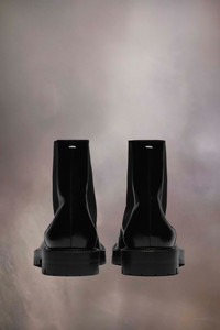 Crafted in brushed calfskin, the Chelsea boots have elasticated sides and a cleated sole. The back features a single white stitch showing the hand of Maison Margiela. They feature the Tabi split-toe, inspired by the traditional 15th century Japanese sock bearing the same name – launched for the Maison's debut collection in 1989. It captures the avant-garde and insubordinate spirit of the Maison and exists as a heritage classic, continually explored through each collection. Product Details Item ID S57WU0275P3827H8396 Upper: 100% calf leather Lining: 100% lamb leather Inside: 100% lamb leather Sole: 100% elastane Heel height: 4 cm/1,5 in Chelsea boots in brushed leather Tabi split toe Slip-on Side elastics White stitching at the back Chunky lug sole Use a soft cloth soaked with water to clean and spread a neutral shoe polishing cream Made in Italy A digital certificate provided by the Aura Blockchain Consortium guarantees the authenticity of this product. Discover more on auraluxuryblockchain.com/#about