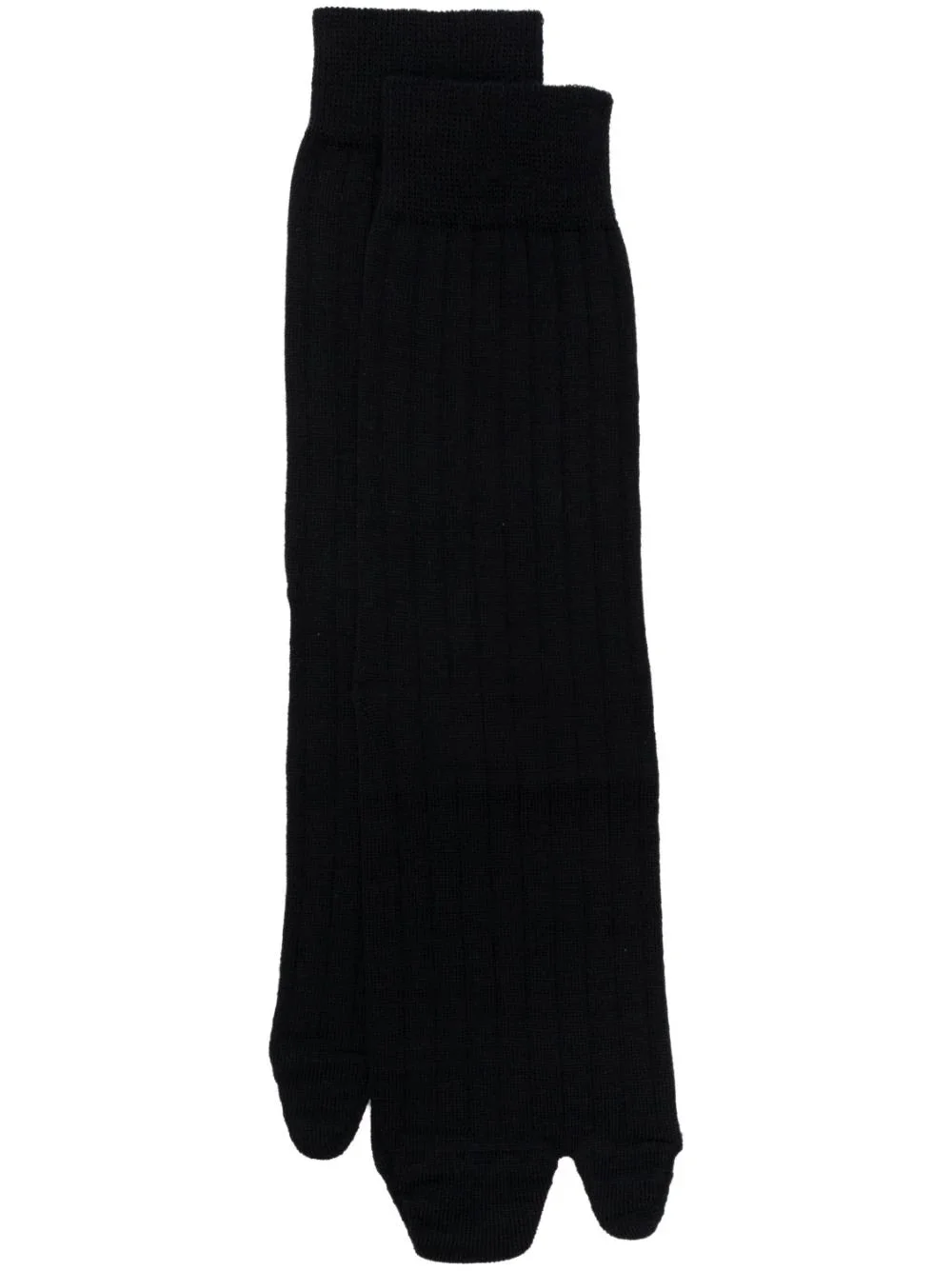 AW23 Tabi Socks in Black from Maison Margiela Highlights - black - stretchy design - ribbed detail - tabi toe Made in Italy Composition: Cotton 90%, Polyamide 10% Washing instructions: Hand Wash Designer ID: S51TL0052S17867 Colour ID: 900 Black