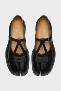 With a cleated sole and fringe decoration to the front, the Mary-Jane shoes are crafted from brushed leather. The pair feature the Tabi split-toe, inspired by the traditional 15th century Japanese sock bearing the same name – launched for the Maison's debut collection in 1989. It captures the avant-garde and insubordinate spirit of the Maison and exists as a heritage classic, continually explored through each collection. Product Details Item ID S58WR0115P3827H8396 Upper: 100% Calf Leather Contrast: 100% Calf Leather Lining: 100% Ovine Leather Inside: 100% Ovine Leather Sole: 100% Rubber Tabi Mary-Jane shoes in polished leather Brogued fringe detailing T-bar strap with metal buckle fastening Rubber lug sole White stitching at the back Made in Italy