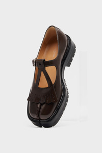 With a cleated sole and fringe decoration to the front, the Mary-Jane shoes are crafted from brushed leather. The pair feature the Tabi split-toe, inspired by the traditional 15th century Japanese sock bearing the same name – launched for the Maison's debut collection in 1989. It captures the avant-garde and insubordinate spirit of the Maison and exists as a heritage classic, continually explored through each collection. Product Details Item ID S58WR0115P3827T2348 Upper: 100% Calf Leather Contrast: 100% Calf Leather Lining: 100% Ovine Leather Inside: 100% Ovine Leather Sole: 100% Rubber Tabi Mary-Jane shoes in polished leather Brogued fringe detailing T-bar strap with metal buckle fastening Rubber lug sole White stitching at the back Made in Italy