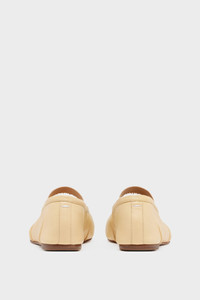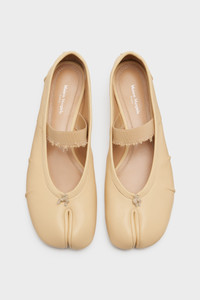 In leather with handmade folds, the ballerinas feature a distressed elastic band and the Tabi split-toe, inspired by the traditional 15th century Japanese sock bearing the same name – launched for the Maison's debut collection in 1989. It captures the avant-garde and insubordinate spirit of the Maison and exists as a heritage classic, continually explored through each collection. Product Details Item ID S39WZ0104P6853HA838 Upper: 100% lamb leather Lining: 100% lamb leather Inside: 100% lamb leather Sole: 100% calf leather Contrast: 100% rubber Ballerina shoes in nappa leather External elastic band with worn treatment Tabi split toe Handmade leather folds Cotton knot at the front White stitching at the back Maison Margiela logo on the sole Due to the delicacy of nappa leather, it is recommended to use vegetable leather products for care and maintenance Made in Italy A digital certificate provided by the Aura Blockchain Consortium guarantees the authenticity of this product. Discover more on auraluxuryblockchain.com/#about