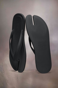 In rubber, these flip-flops feature the Tabi split-toe, inspired by the traditional 15th century Japanese sock bearing the same name – launched for the Maison's debut collection in 1989. It captures the avant-garde and insubordinate spirit of the Maison and exists as a heritage classic, continually explored through each collection. Product Details Item ID S58WX0096P4785T8008 Composition: 100% polyurethane Rubber flip-flops Tabi split toe Logo label on the insole White stitching on the inside Made in Italy A digital certificate provided by the Aura Blockchain Consortium guarantees the authenticity of this product. Discover more on auraluxuryblockchain.com/#about