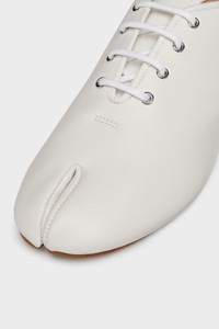 The Tabi Jazz Lace-up are crafted in a supple soft-touch leather with a flexible leather sole, and are finished with the maison's signature white stitch at the back. They feature the Tabi split-toe, inspired by the traditional 15th century Japanese sock bearing the same name Introduced in 1989, the Tabi continues to reflect the Maison’s insubordinate spirit. Product Details Item ID S58WQ0149PR869T1003 Upper: 100% ovine leather Lining: 55% polyamide-nylon 45% polyurethane Contrast: 100% cotton Inside: 100% ovine leather Sole: 100% calf leather Tabi split toe Shoelace-style closure Four stitches at the back Made in Italy