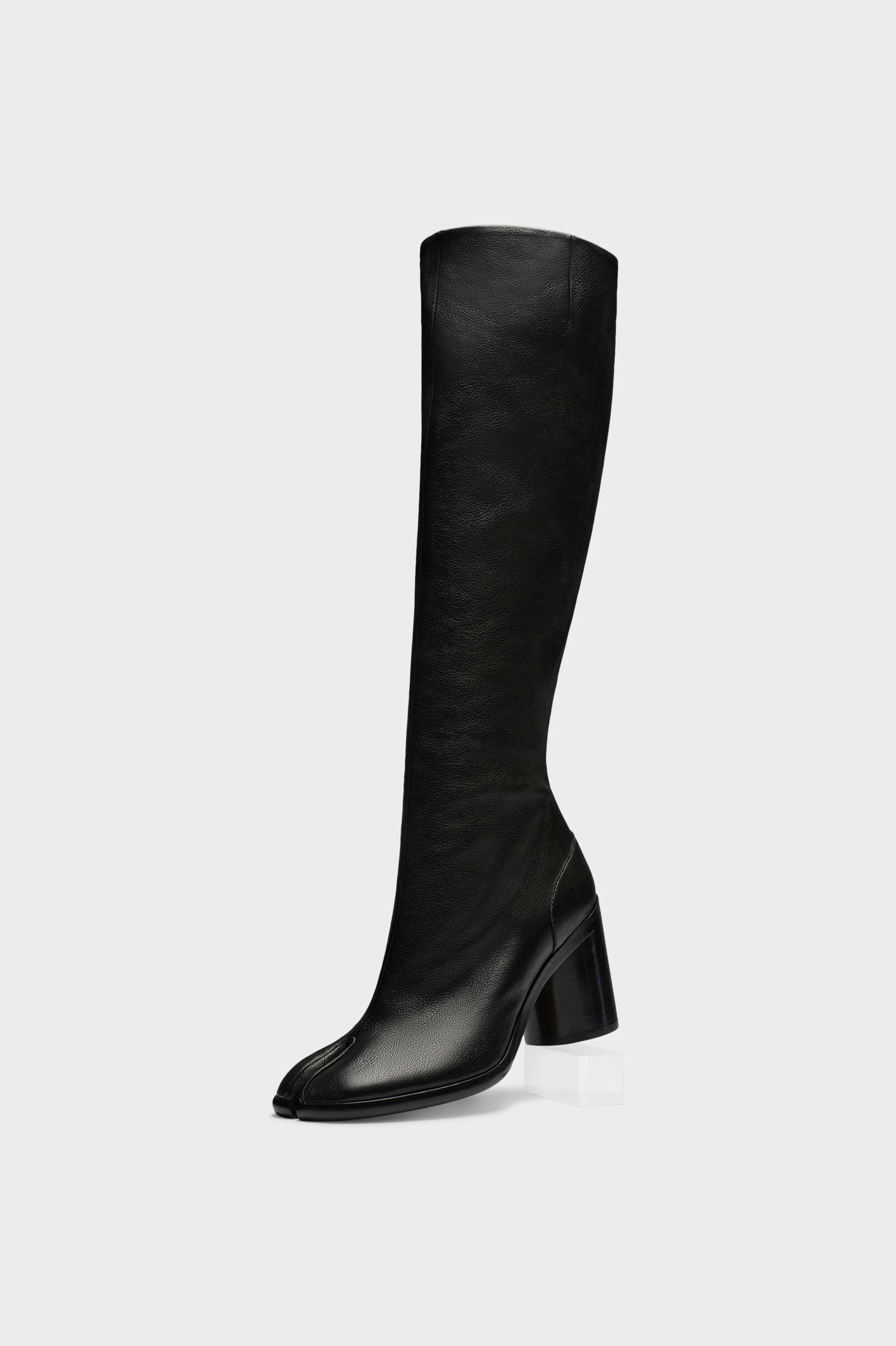 Crafted in vintage soft leather, these block-heel knee-high boots feature the Tabi split-toe, inspired by the traditional 15th century Japanese sock bearing the same name – launched for the Maison's debut collection in 1989. It captures the avant-garde and insubordinate spirit of the Maison and exists as a heritage classic, continually explored through each collection. 8cm heel. Product Details Item ID S34WW0057P3753T8013 Upper: 100% lamb leather Lining: 100% calf leather Inside: 100% calf leather Sole: 100% calf leather Contrast: 100% rubber Heel height: 8 cm/3 in Cylindrical heel Knee height boots in nappa leather Tabi split toe White stitching at the back Covered zip closure Due to the delicacy of nappa leather, it is recommended to use vegetable leather products for care and maintenance Made in Italy A digital certificate provided by the Aura Blockchain Consortium guarantees the authenticity of this product. Discover more on auraluxuryblockchain.com/#about The model is 178cm tall. Model wears size 40.