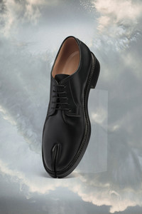 The brushed leather lace-up shoes feature a Tabi almond-shaped toe, a new iteration of the iconic style, and are lined with leather with a calf leather sole. Maison Margiela’s signature white stitch appears at the back. The Tabi split-toe is inspired by the traditional 15th century Japanese sock bearing the same name – launched for the Maison’s debut collection in 1989. It captures the avant-garde and insubordinate spirit of the Maison and exists as a heritage classic, continually explored through each collection. Product Details Item ID S39WQ0086P5602T8013 COED Fall Winter 2023 Upper: 100% Brushed calf leather Lining: 100% Lamb leather Inside: 100% Lamb leather Sole: 100% Calf leather Contrast: 100% Rubber Heel height: 3 cm/1,1 in Pointed Tabi shape White stitching at the back Brand logo on the sole Internal logo stamping Made in Italy A digital certificate provided by the Aura Blockchain Consortium guarantees the authenticity of this product. Discover more on auraluxuryblockchain.com/#about