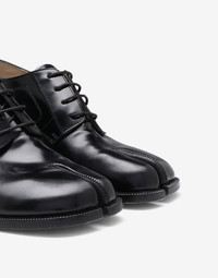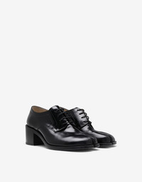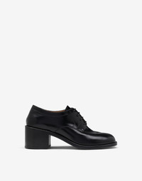 Lace-up shoes from the Artisanal Show with the Maison's iconic Tabi cleft toe shape – inspired by the traditional 15th century Japanese sock carrying the same name. They come in brushed leather with a stacked heel. Made in Italy. Item details 100% Bovine leather Laces Square heel Square toeline Leather lining Leather sole