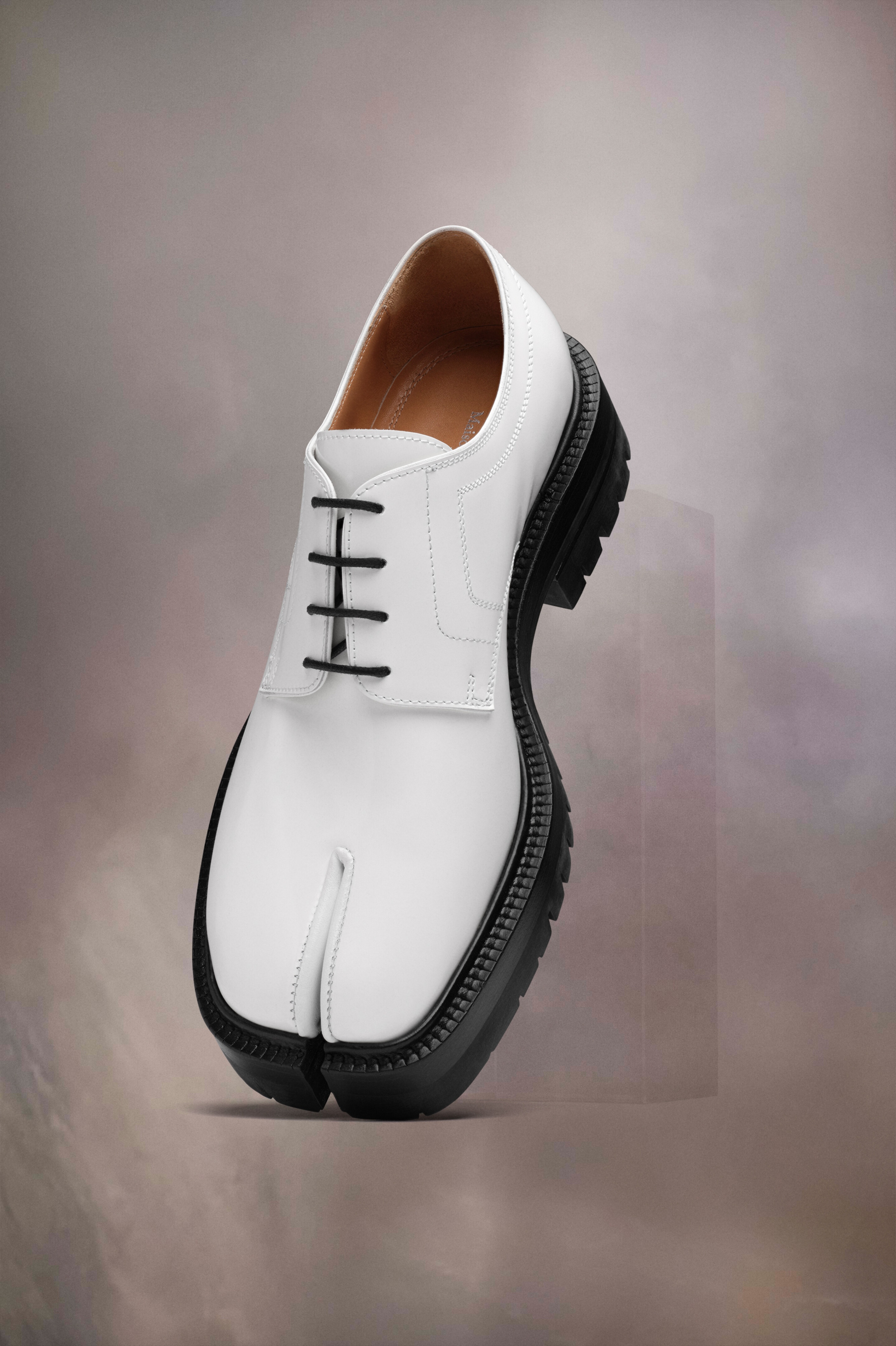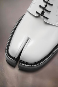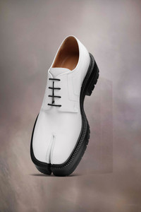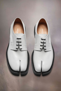 Crafted from brushed calfskin, the lace-up shoes feature a chunky cleated sole and the Tabi split-toe, inspired by the traditional 15th century Japanese sock bearing the same name – launched for the Maison's debut collection in 1989. It captures the avant-garde and insubordinate spirit of the Maison and exists as a heritage classic, continually explored through each collection. Product Details Item ID S58WQ0134P3827H8327 Upper: 100% calf leather Lining: 100% lamb leather Inside: 100% lamb leather Sole: 100% calf leather Contrast: 100% rubber Lace-up shoes in brushed leather Tabi split toe White stitching at the back Chunky lug sole Use a soft cloth soaked with water to clean and spread a neutral shoe polishing cream Made in Italy A digital certificate provided by the Aura Blockchain Consortium guarantees the authenticity of this product. Discover more on auraluxuryblockchain.com/#about
