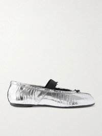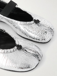 Tabi split-toe metallic cracked-leather ballet flats Silver