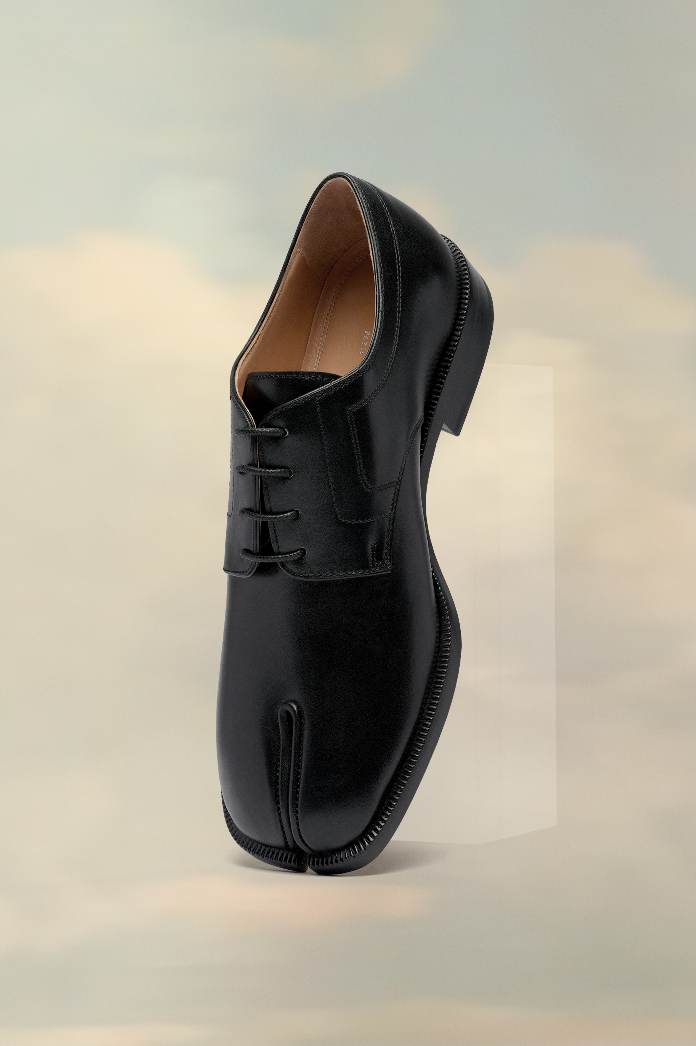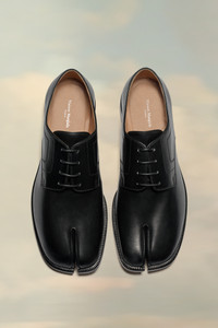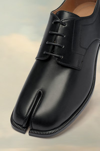 These brogues are crafted from calf leather with a classic lace-up design and signature stitch at the back. They feature the Tabi split-toe, inspired by the traditional 15th century Japanese sock bearing the same name – launched for the Maison's debut collection in 1989. It captures the avant-garde and insubordinate spirit of the Maison and exists as a heritage classic, continually explored through each collection. Product Details Item ID S34WQ0021P3292T8013 Upper: 100% Calf leather Lining: 100% Lamb leather Sole: 100% Calf leather Tabi split toe Lace-up White stitching at the back Brand logo on the insole Internal logo stamping Use a soft cloth soaked with water to clean and spread a neutral shoe polishing cream Made in Italy A digital certificate provided by the Aura Blockchain Consortium guarantees the authenticity of this product. Discover more on https://auraluxuryblockchain.com/#about