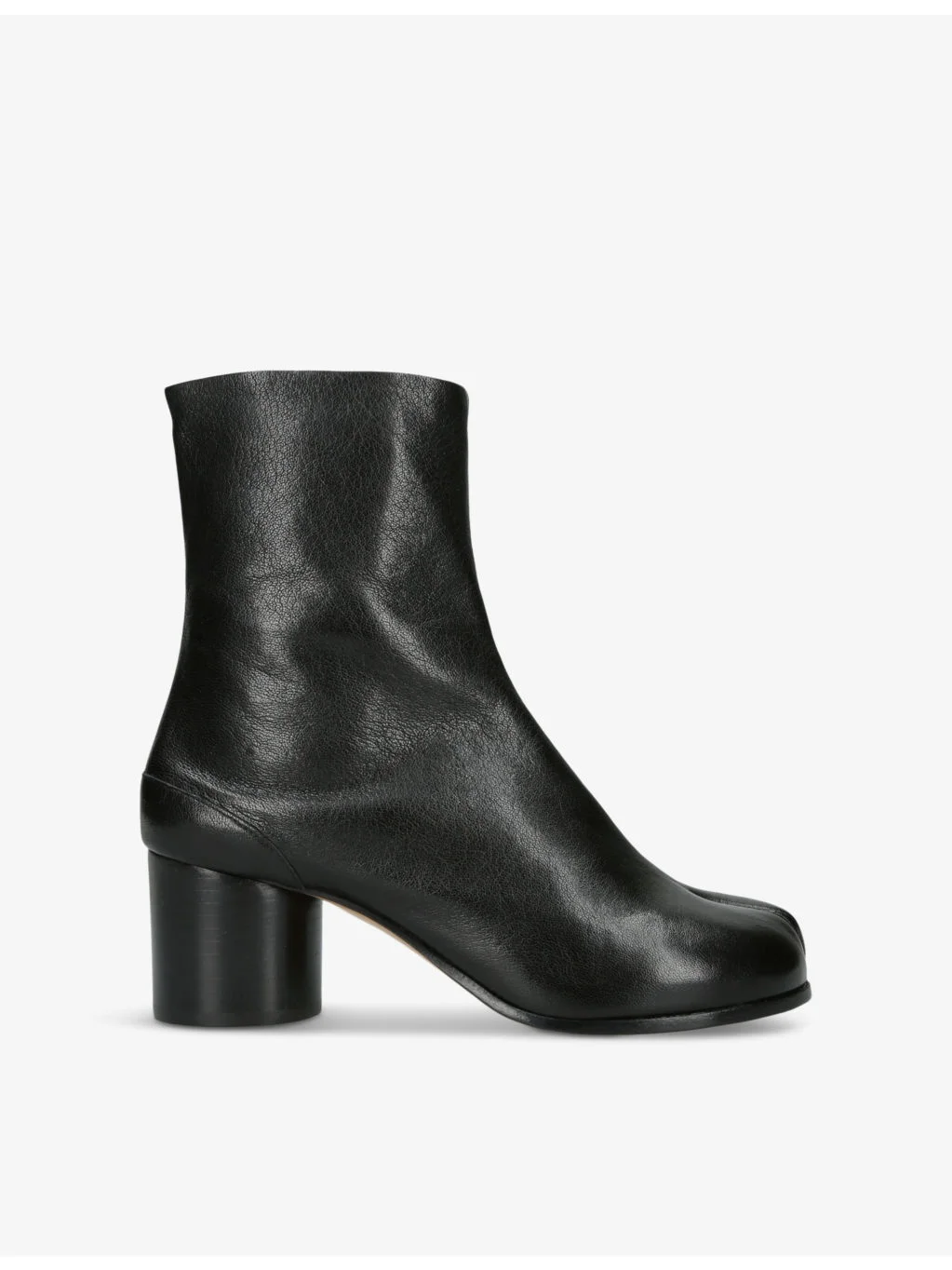 PRODUCT DETAILS - Maison Margiela leather heeled ankle boots - 100% leather - Hook-and-eye fastening - Split toe detail, tonal stitching, cylindrical block heel - Heel height 2.3” - Made in Italy - Specialist leather clean - Upper: 100% leather - Lining: 100% leather - Sole: 100% leather Ref: R04240831