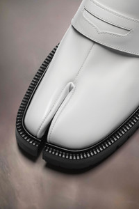Crafted from brushed calfskin, the chunky cleated sole loafers feature the Tabi split-toe, inspired by the traditional 15th century Japanese sock bearing the same name – launched for the Maison's debut collection in 1989. It captures the avant-garde and insubordinate spirit of the Maison and exists as a heritage classic, continually explored through each collection. Product Details Item ID S58WR0110P3827H8327 Upper: 100% calf leather Lining: 100% lamb leather Inside: 100% lamb leather Sole: 100% calf leather Contrast: 100% rubber Loafer in brushed leather Tabi split toe Lace-up White stitching at the back Chunky lug sole Use a soft cloth soaked with water to clean and spread a neutral shoe polishing cream Made in Italy A digital certificate provided by the Aura Blockchain Consortium guarantees the authenticity of this product. Discover more on auraluxuryblockchain.com/#about