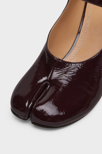 Crafted from soft patent leather with an adjustable front strap, the Mary-Jane shoes feature a 6cm cylindrical heel and the Tabi split-toe. The toe shape was inspired by the traditional 15th century Japanese sock bearing the same name – launched for the Maison's debut collection in 1989. It is a symbol of the avant-garde and insubordinate spirit of the Maison and exists as a heritage classic, explored through the collections. Maison Margiela's signature white stitch appears at the back. Product Details Item ID S58WL0217P8194T5078 Upper: 100% Ovine Leather Lining: 100% Ovine Leather Inside: 100% Ovine Leather Contrast: 100% Ovine Leather Sole: 100% Calf Leather Contrast: 100% Rubber Heel height: 6 cm/2,3 in Cylindrical heel Mary Jane shoes in soft patent leather Tabi split toe Adjustable strap White stitching at the back Clean with soft, dampened cloth Made in Italy