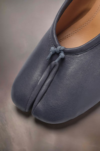 In soft nappa leather, the Maison presents the Tabi new ballerinas, which take their design from ballerina shoes in the archives. They are crafted with handmade folds, manually worked to create an artisanal vintage effect at the sides. Complete with a 3cm cylindrical heel. They feature the Tabi split-toe, inspired by the traditional 15th century Japanese sock bearing the same name – launched for the Maison's debut collection in 1989. It captures the avant-garde and insubordinate spirit of the Maison and exists as a heritage classic, continually explored through each collection. Product Details Item ID S58WZ0128P6378T6313 Upper: 100% lamb leather Lining: 100% calf leather Inside: 100% calf leather Sole: 100% calf leather Heel height: 3 cm/1 in Ballerina shoes in nappa leather Handmade leather folds Vintage treatment on the side Cotton knot at the front White stitching at the back Due to the delicacy of nappa leather, it is recommended to use vegetable leather products for care and maintenance Made in Italy A digital certificate provided by the Aura Blockchain Consortium guarantees the authenticity of this product. Discover more on auraluxuryblockchain.com/#about