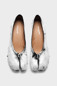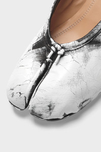 In nappa leather with hand-painted treatment, the Maison presents the Tabi new ballerinas, which take their design from ballerina shoes in the archives. They are crafted with handmade folds, manually worked to create an artisanal vintage effect at the sides. Complete with a 3cm cylindrical heel. They feature the Tabi split-toe, inspired by the traditional 15th century Japanese sock bearing the same name – launched for the Maison's debut collection in 1989. It captures the avant-garde and insubordinate spirit of the Maison and exists as a heritage classic, continually explored through each collection. Product Details Item ID S58WZ0128P4162H1532 Upper: 100% lamb leather Lining: 100% calf leather Inside: 100% calf leather Sole: 100% calf leather Heel height: 3 cm/1 in Ballerina shoes in nappa leather Handmade leather folds Handpainted treatment Cotton knot at the front White stitching at the back Made in Italy A digital certificate provided by the Aura Blockchain Consortium guarantees the authenticity of this product. Discover more on auraluxuryblockchain.com/#about
