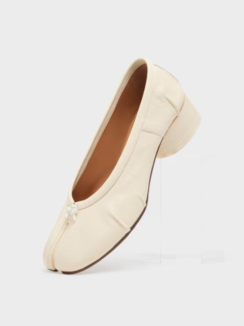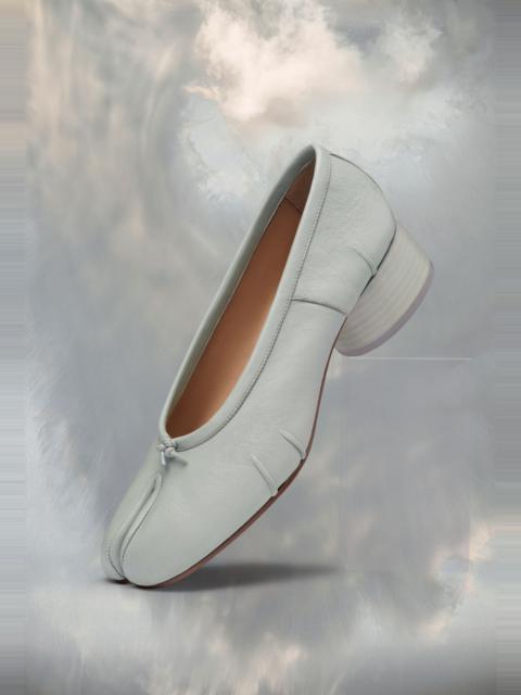 Maison Margiela presents the Tabi new ballerinas, which take their design from ballerina shoes in the house archives. They are crafted in soft nappa leather with a hand crafted used treament applied at the folds, base and seams, manually worked to create an artisanal vintage effect. They feature the Tabi split-toe, inspired by the traditional 15th century Japanese sock bearing the same name – launched for the Maison's debut collection in 1989. It captures the avant-garde and insubordinate spirit of the Maison and exists as a heritage classic, continually explored through each collection. Product Details Item ID S58WZ0128P6378T8013 Upper: 100% Ovine Leather Lining: 100% Calf Leather Inside: 100% Calf Leather Sole: 100% Calf Leather Contrast: 100% Rubber Heel height: 3 cm Cylindrical heel Ballerina shoes in nappa leather Tabi split toe Handmade leather folds Worn treatment Cotton knot at the front White stitching at the back Due to the delicacy of nappa leather, it is recommended to use vegetable leather products for care and maintenance Made in Italy