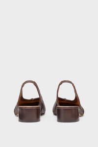 Maison Margiela presents the Tabi new ballerinas, which take their design from ballerina shoes in the house archives. The slingbacks have a 3cm heel and are crafted in soft nappa leather, with a handcrafted used treatment applied at the folds, base and seams, manually worked to create an artisanal vintage effect. They feature the Tabi split-toe, inspired by the traditional 15th century Japanese sock bearing the same name – launched for the Maison's debut collection in 1989. It captures the avant-garde and insubordinate spirit of the Maison and exists as a heritage classic, continually explored through each collection. Product Details Item ID S58WZ0141P6378T2358 Upper: 100% Calf Leather Lining: 100% Ovine Leather Inside: 100% Ovine Leather Contrast: 100% Calf Leather Sole: 100% Calf Leather Contrast: 100% Rubber Tabi slingback heeled mules in leather Notched vamp Front knotted detail Stacked block heel Maison Margiela signature at the insole Made in Italy