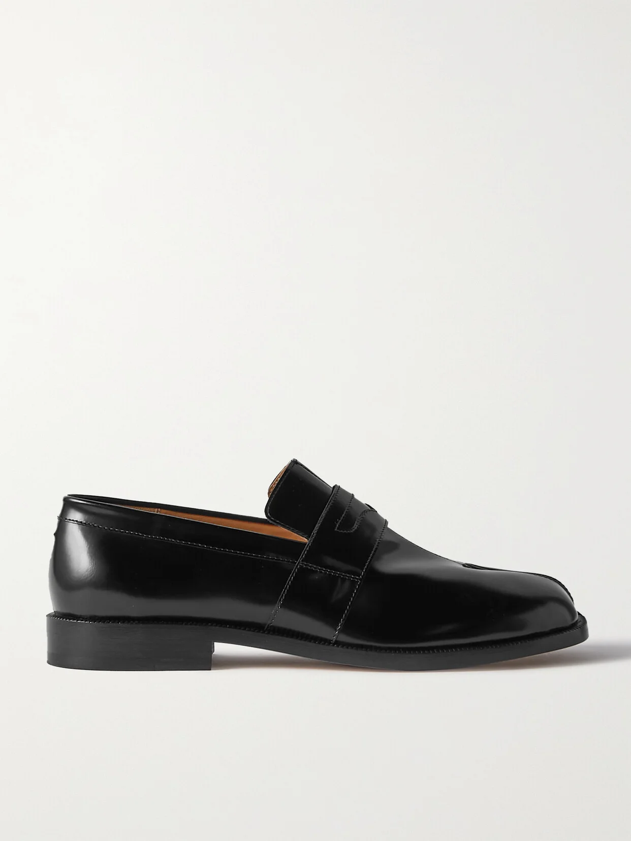 The signature split toes of Maison Margiela's 'Tabi' range is achieved by hand - a symbol of the label's exemplary craftsmanship. These loafers have been made in Italy from smooth glossed-leather and are detailed with penny slots. Style yours with sharp tailoring for office trips.
