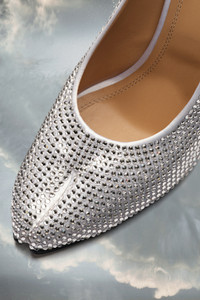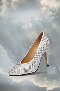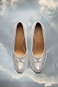 The rhinestone pumps feature a Tabi pointed toe, a new iteration of the iconic style, and are lined with a calf leather sole, with visible numerical logo. Maison Margiela’s signature white stitch appears at the back. The Tabi split-toe is inspired by the traditional 15th century Japanese sock bearing the same name – launched for the Maison’s debut collection in 1989. It captures the avant-garde and insubordinate spirit of the Maison and exists as a heritage classic, continually explored through each collection. Product Details Item ID S39WL0124P5673T1008 COED Fall Winter 2023 Application: 100% Rhinestones Upper: 100% Polyester Lining: 100% Lamb leather Inside: 100% Lamb leather Sole: 100% Calf leather Heel height: 11 cm/4,3 in Pointed Tabi shape White stitching at the back Brand logo on the sole Internal logo stamping Made in Italy