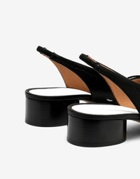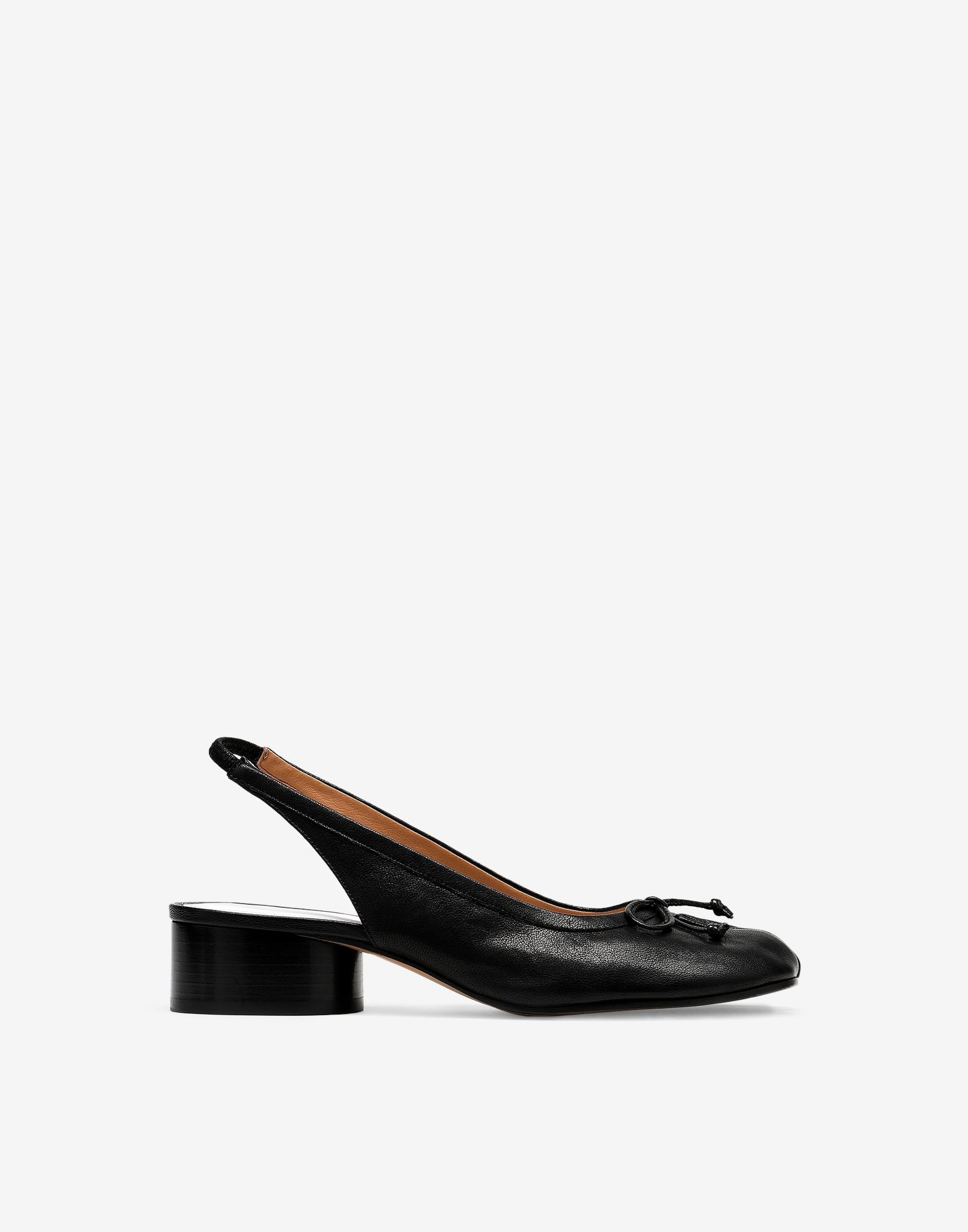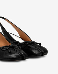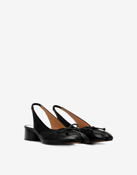 Sling back shoes, crafted from soft vintage leather, with the Tabi split-toe, a XXmm cylindrical heel and lace bow detail. The iconic Tabi shoe, inspired by the traditional 15th century Japanese sock bearing the same name – launched for the Maison's debut collection in 1989. It captures the avant-garde and insubordinate spirit of the Maison and exists as a heritage classic, continually explored through each collection. Made in Italy. Item details 100% Bovine leather Solid color Round toeline Leather lining Leather sole Elasticized gores