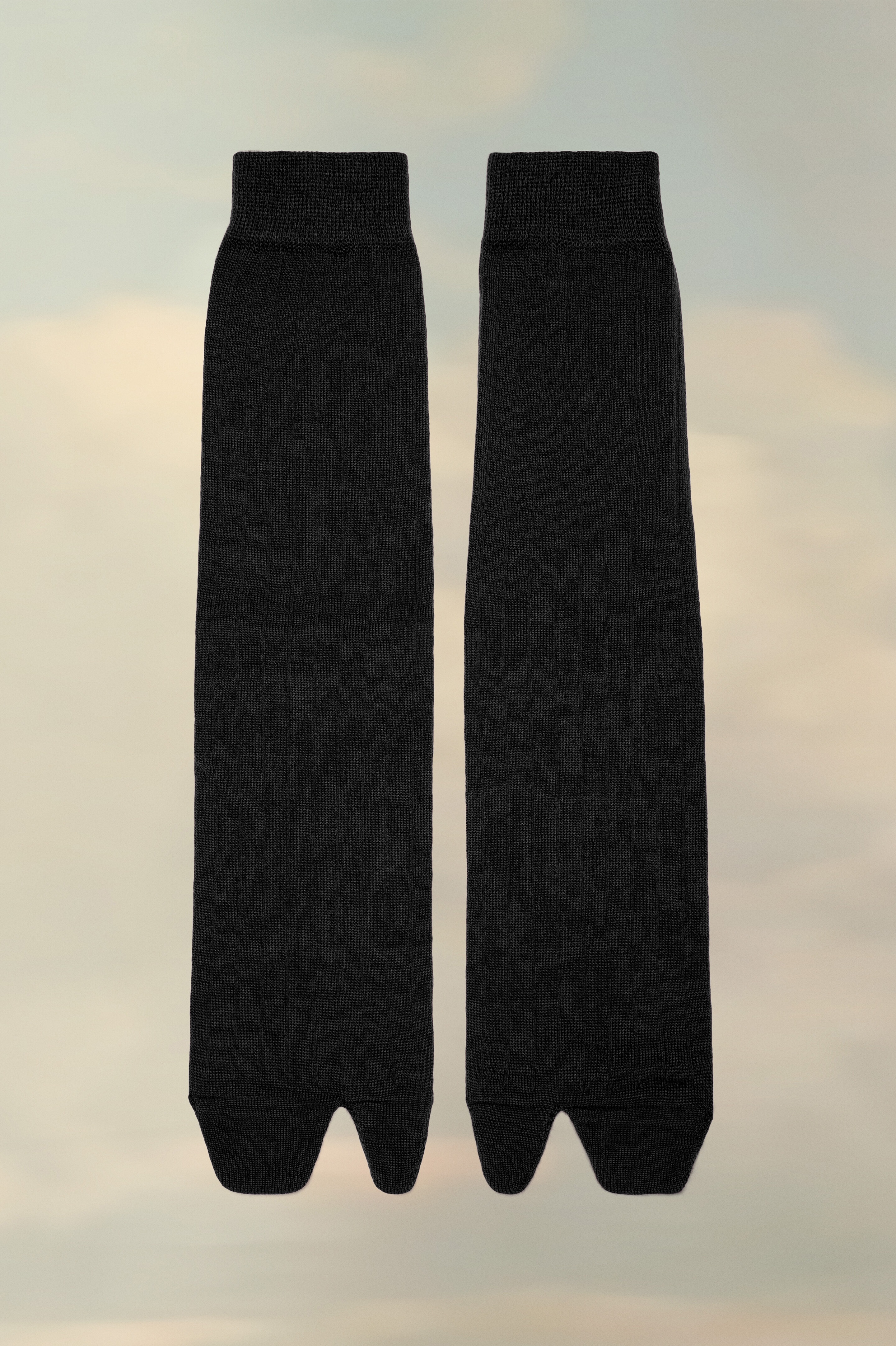 Wool-blend ankle socks featuring the Maison's iconic Tabi split-toe shape, inspired by the traditional 15th century Japanese sock bearing the same name. Product Details Item ID SI1TL0001S17867900 Composition: 78% Wool, 22% Polyamide Tabi split toe White stitching at the back Made in Italy The model is 187cm tall.