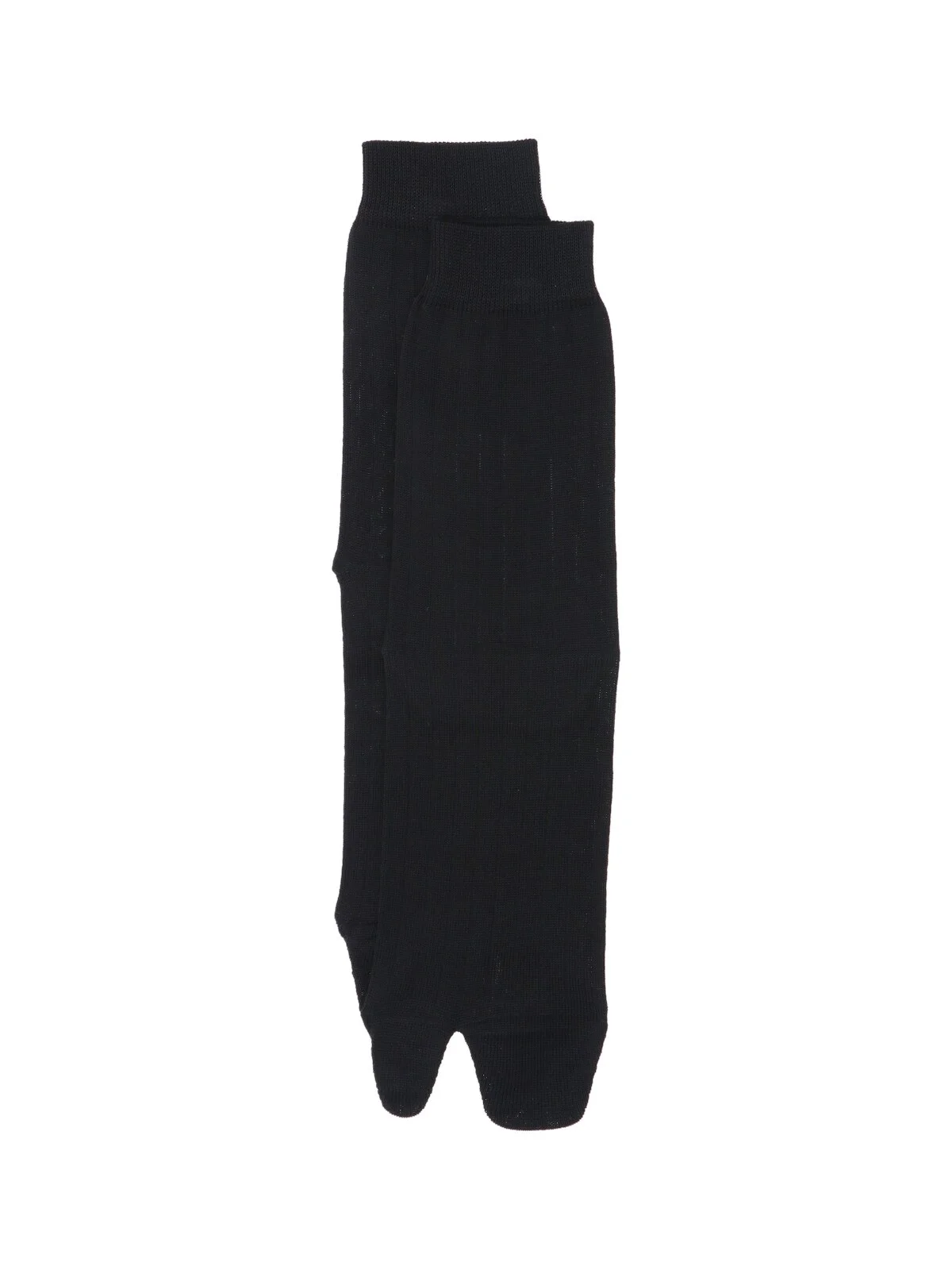 MAISON MARGIELA 'TABI' SOCKS IN BLACK COTTON BLEND WITH RIBBED PATTERN, WHITE 'STITCH' STITCHING CONTRASTINGLY EMBROIDERED AT THE BACK. PRODUCT INFO PRODUCT CODE S51TL0051 S17868900 COMPOSITION: 74% COTTON, 26% POLYAMIDE MADE IN: ITALY