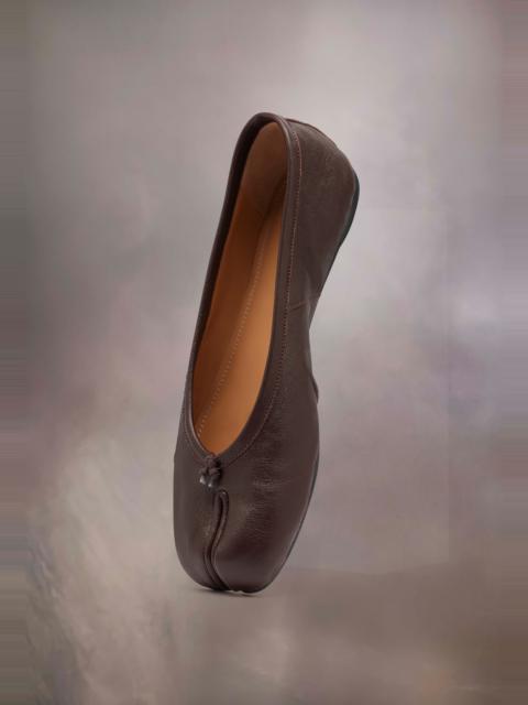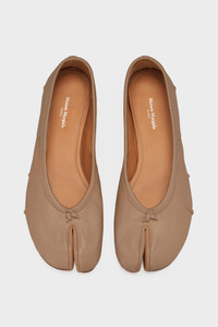 Maison Margiela presents the Tabi new ballerinas, which take their design from ballerina shoes in the house archives. They are crafted in soft nappa leather with a hand crafted used treament applied at the folds, base and seams, manually worked to create an artisanal vintage effect. They feature the Tabi split-toe, inspired by the traditional 15th century Japanese sock bearing the same name – launched for the Maison's debut collection in 1989. It captures the avant-garde and insubordinate spirit of the Maison and exists as a heritage classic, continually explored through each collection. Product Details Item ID S58WZ0127P6378T4091 Upper: 100% Ovine Leather Lining: 100% Calf Leather Inside: 100% Calf Leather Sole: 100% Calf Leather Ballerina shoes in nappa leather Tabi split toe Handmade leather folds Worn treatment Cotton knot at the front White stitching at the back Due to the delicacy of nappa leather, it is recommended to use vegetable leather products for care and maintenance Made in Italy